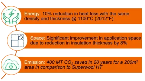 Superwool Prime, a patented 1300°C (2370°F) AES Low Biopersistent Fibre that delivers energy savings, improved application efficiency, and reduced emissions.